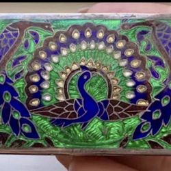 Gorgeous Antique Small Sterling Silver & Enamel Peacock Hinged Box$175North Smithfield, RI