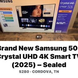 Brand New Samsung 50” Crystal UHD 4K Smart TV (2025 Model) – New in Box$280Cordova, TN