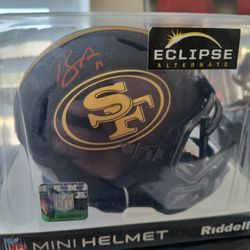 Brandon Aiyuk Auto Red Ink Eclipse Alternate Mini Helmet JSA Authentic $100Georgetown, TX