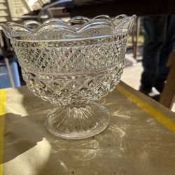 Vintage Large Anchor Hocking Wexford Clear Diamond Cut Glass Pedestal Bowl$25Port Acres, TX