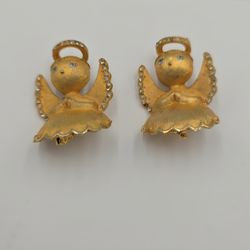 2 VTG Ultra Signed Angels on My Shoulder Rhinestone Gold Tone Pin Brooches 1.5"$20Grand Prairie, TX