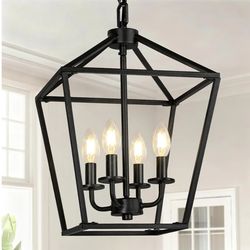 0250: New 4 Light Chandelier, Industrial Ceiling Light Black Lantern Light Fixtures with Farmhouse Metal Cage Adjustable Height Rustic Geometric Hangi$35Lancaster, TX