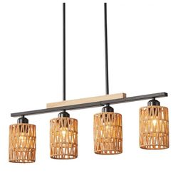 New Farmhouse Linear Ratten Chandelier, Black Finish Wood Pendant Light Fixtures Over Table, Adjustable Height Kitchen Island Light Dining Room 4-Ligh$50Red Oak, TX
