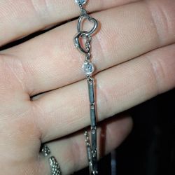 Sterling Silver 925 Bracelet crystal Women's Small 7" S925 FM Double Heart Braclet$20Temple, TX