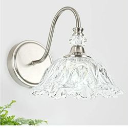 New 1 Piece Brushed Nickel Wall Sconce with Floral Clear Glass Shade, Brushed Nickel Finish Wall Mount Lighting for Bathroom, Modern Bathroom Vanity L$50Red Oak, TX