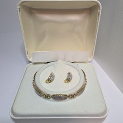Never worn! 10K Two-Tone Gold & Diamond Bracelet + Earring Set$95Austin, TX