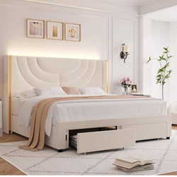 Brand New in box modern king size platform bed with LED lights charger station and drawers!!!$200Houston, TX