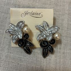 Vintage Jezlane Post Earrings Featuring Textured Silver-Tone Starfish Black Enamel Leaf Designs Faux Pearl$9Hampton, VA