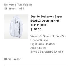 Seattle Seahawk Super Bowl LX Opening Night Tech Fleece Womens$240Burien, WA