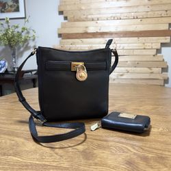 Michael Kors Black Leather Hamilton Traveler Messenger bag & Small Wallet Set$65Covington, WA