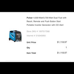 Pulsar 4500W Dual Inverter Generator$800Federal Way, WA