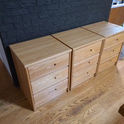 Set of 3 Light Oak Wood 3-Drawer Nightstand End Table Desk Storage Cabinets