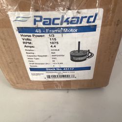 Packard 48- Frame Motor 1/3 HP 115 Volts 1075 RPM 4.4 Amps 3-3$50Pasco, WA