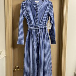 New With Tags Women’s Size XS Long Blue And White Striped Dress With Pockets. Tie Belt. Never Worn $10Dupont, WA
