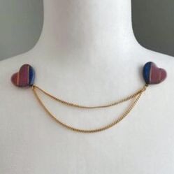 Unique Cool Ceramic Heart Double Collar Chain Brooch / Cardigan Pin Clips - Handpainted Pins on each heart $15Tacoma, WA