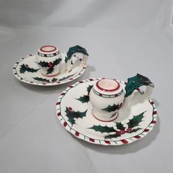 2 Lefton HOLLY WITH TOUCHES OF CANDY CANE Chambersticks Candle Holders Vintage$8Little Chute, WI