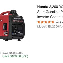 Honda Suitcase Generator Eu 2200I$999Wasilla, AK