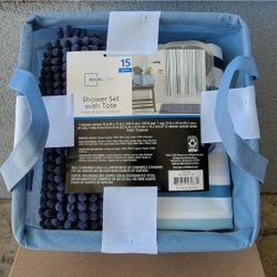 Mainstay 15 Pieces Shower Tote Set 1 Curtain 12 Hooks 1 Rug 1 Tote$15Gadsden, AL