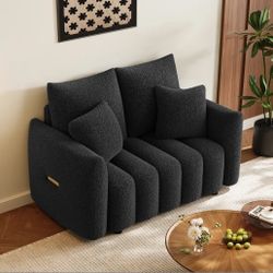 Modern Tufted Teddy Loveseat , Upholstered 2-Seater Sofa & 2 Toss Pillow(s),Black,W11(contact info removed)