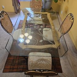 Dining Room Table with Glass top Wrought Iron Base + 4 Wicker Back Chairs$200Waldo, AL
