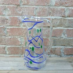 Handblown Glass Cobalt Blue Stripe/Green Dot Pitcher $50Pinson, AL
