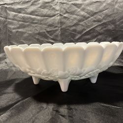 Vintage 1950's Indiana Milk Glass Large Footed Oval Embossed White Fruit Bowl $19Alabaster, AL