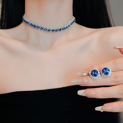 Green diamond necklace, earrings, light luxury choker necklace, clavicle chain, women's necklace set$11Springville, AL