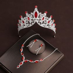 Baroque red diamond retro atmospheric crown wedding bride tiara necklace three-piece set$20Springville, AL