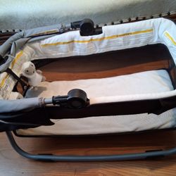 Baby Trend Rock-A-Bye Bassinet with a canopy, carry handle, and 2 toys