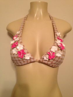 Victoria secret brown polka dot flower bikini top size small$14Crestview, FL