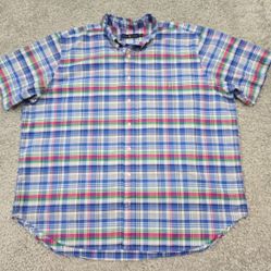 Ralph Lauren Shirt 2XB Blue Plaid Short Sleeve Button Up Preppy Casual Classic