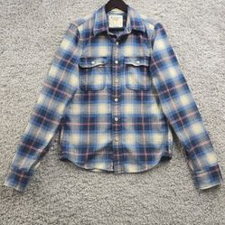 Abercrombie Blue Plaid Flannel Shirt Large Long Sleeve Soft Outdoor Fall Layers