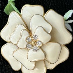 Vintage Estate Flower Enamel Metal Pin Brooch Beige/Cream Brushed Gold Tone$18Arab, AL