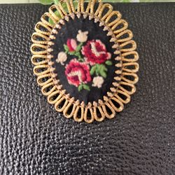 Vintage Brooch, Vintage Embroidered Jewelry, Cross Stitch Jewelry, Rose Jewelry Rose Brooch, Convertible Pendant$20Arab, AL