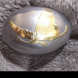 Egg Shaped Lead/Zinc Paper Weight/ Trinket Box w/ Brass Butterfly Embossed Lid, Very Unique$20Chunchula, AL