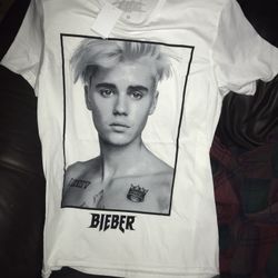 Justin Bieber unisex Portrait T-Shirt M White Short Sleeve Graphic Crew Neck NWT$12Mobile, AL