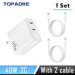 4OW 2 Ports USB-C Type-C GaN Fast Charger with Charging Light, Fast Charging Block with 3.3Ft Type-C Charging Cable For IPhone$15Mobile, AL