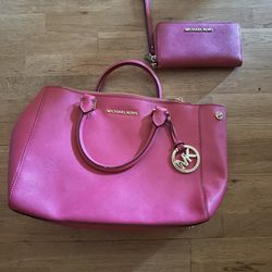 Michael Kors hot pink leather tote bag W\ wristlet wallet$125Mobile, AL