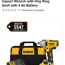 Dewalt Battery Operated Impact Wrench With Bag$215Prattville, AL
