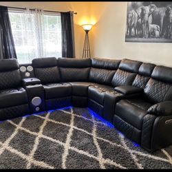 Black Leather LED recliner Sectional with Speakers And Cupholders – $1,400$1,400Montgomery, AL