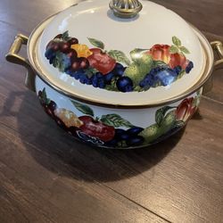 Vtg Lincoware Enamelware Brass Orchard Royale Casserole Dutch Oven w/Lid 4.5 Qt$13Centreville, AL