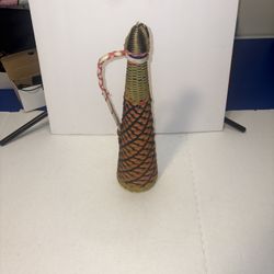 1960s Scoubidou SPANISH Hand Woven GLASS WINE BOTTLES Plastic Wicker$8Mcneil, AR