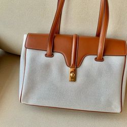 Medium-sized canvas-and-leather handbag, dimensions: 32 X 24 X 15CM