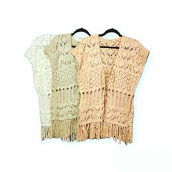 Handmade Crochet Fringe Cardigans Off White or Beige, Plus Size Fits L XL 1X 2X $19Hulbert, OK