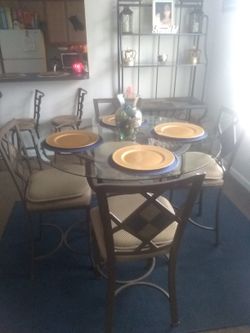 Glass Stone Pub Height Dining Table With 4 Cushion Chairs and Matching Bakers Rack only had for 3 or 4 months...like brand new...very good condition$525Memphis, TN