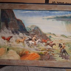 Western Scene Original Oil 41 1/8" W X 29 5/8" H Signed Painting $50Conway, AR