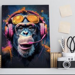 Colorful Monkey Wall Art Chimps with Pink Headphones - 16x24inch/40x60cm - NEW$25Bentonville, AR