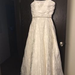 David’s bridal strapless lace white wedding dress with veil$400Centerton, AR