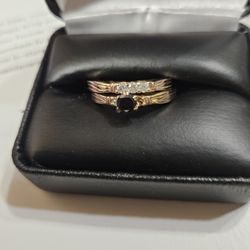 10K GOLD WEDDING Rings with black onyx and diamond size 7