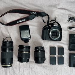 Canon - EOS 2000D / Rebel T6 DSLR Camera PLUS 3 different lenses, a detachable flash, and 4 battery packs. $500Tempe, AZ